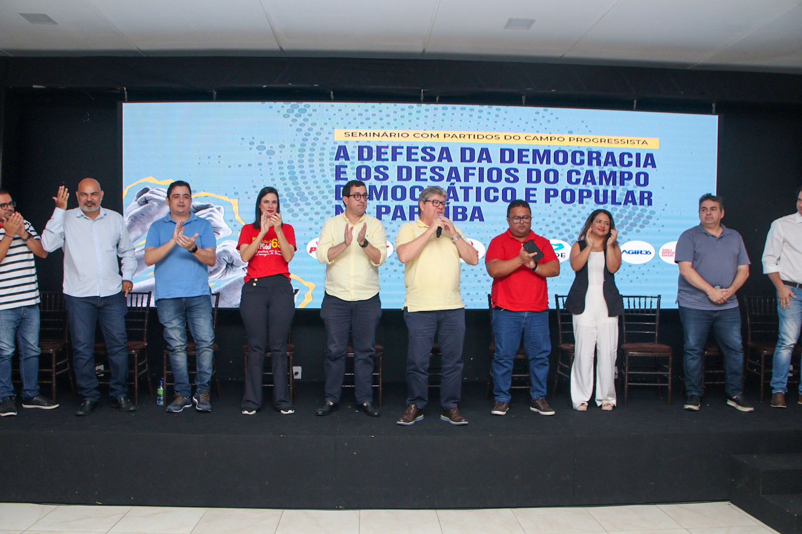 O governador João Azevêdo (PSB) participou, neste sábado (27), em João Pessoa, do seminário com o tema “A defesa da democracia e os desafios do campo democrático popular da Paraíba”, que contou com a presença de diversas lideranças do estado e de dirigentes partidários do PSB, PT, PV, Rede Sustentabilidade, Agir 36, PCdoB, PMN, PDT e Solidariedade.